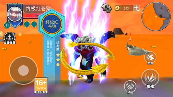 1、扮演首领指挥族群,增进成员亲密度,壮大巨猿家族。