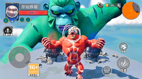 1、化身巨猿展开自由的掌上探索,在神秘的史前世界自由冒险,完成不同挑战;