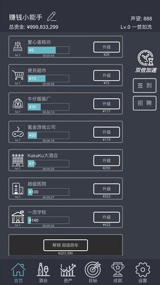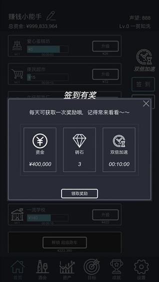 3、不断解锁新的玩法,积累奖励,完成自己的首富梦想,实现人生逆袭。