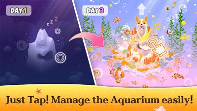 3、接着我们就可以来创造【鱼】,造一条鱼可以让点击和放置的产量都翻倍。在珊瑚石右下端,有一个红色【管理】按钮,这里可以对鱼儿进行管理及合成,要逐一找到达成收集,才能创出生命。造鱼的种类方面,建议每种鱼都要造一只,因为中期解锁一些鱼的要求是多少种,而不是多少只。多解锁一些隐藏鱼,都可以凑数。