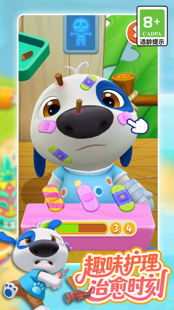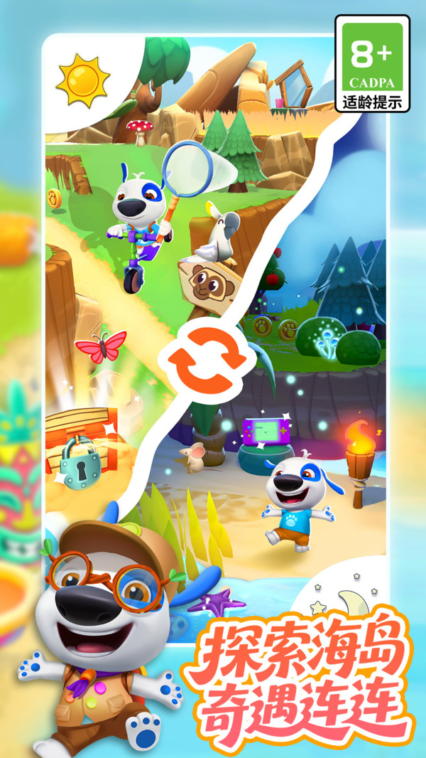逛逛会说话的汉克狗的海岛树屋,体验更多自定义选项!为虚拟宠物穿上不同的服饰,制作他喜欢的冰淇淋,或完成贴纸簿,记录会说话的汉克狗在海岛上的特别冒险。与汉克狗的动物朋友们留下无数美好回忆,获得更多收藏品!