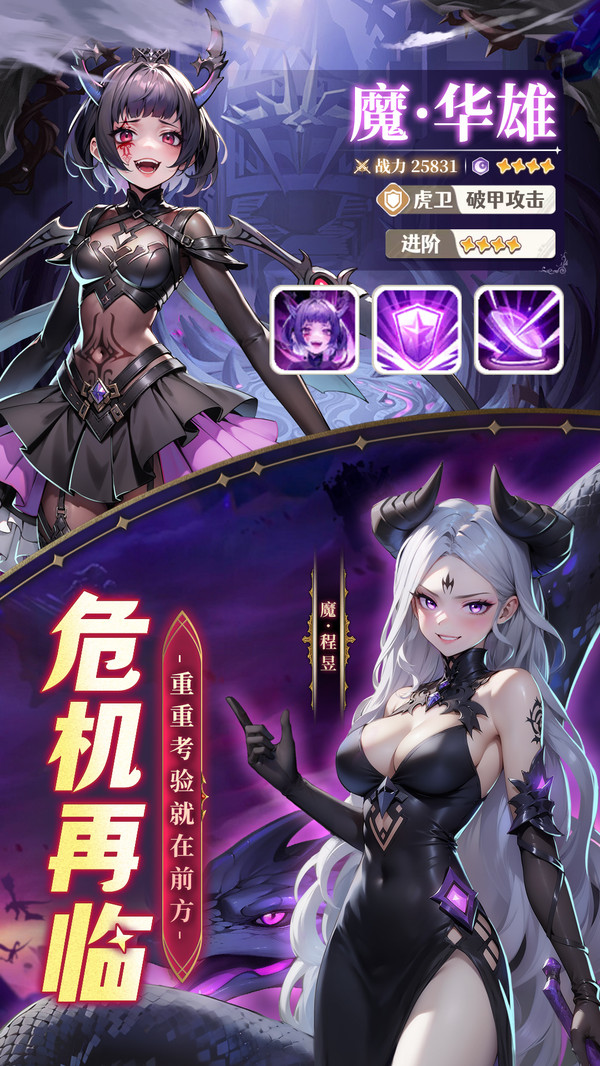 游戏核心是卡牌对战与策略运用。你将与众多传奇女武将签订契约,这些女武将都拥有独特的技能和强大的力量,她们会成为你拯救世界道路上的得力伙伴。