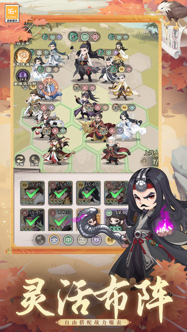 海量传奇侠客自由招募,武林盟主、隐世高手皆可纳入麾下,轻松组建专属阵容。