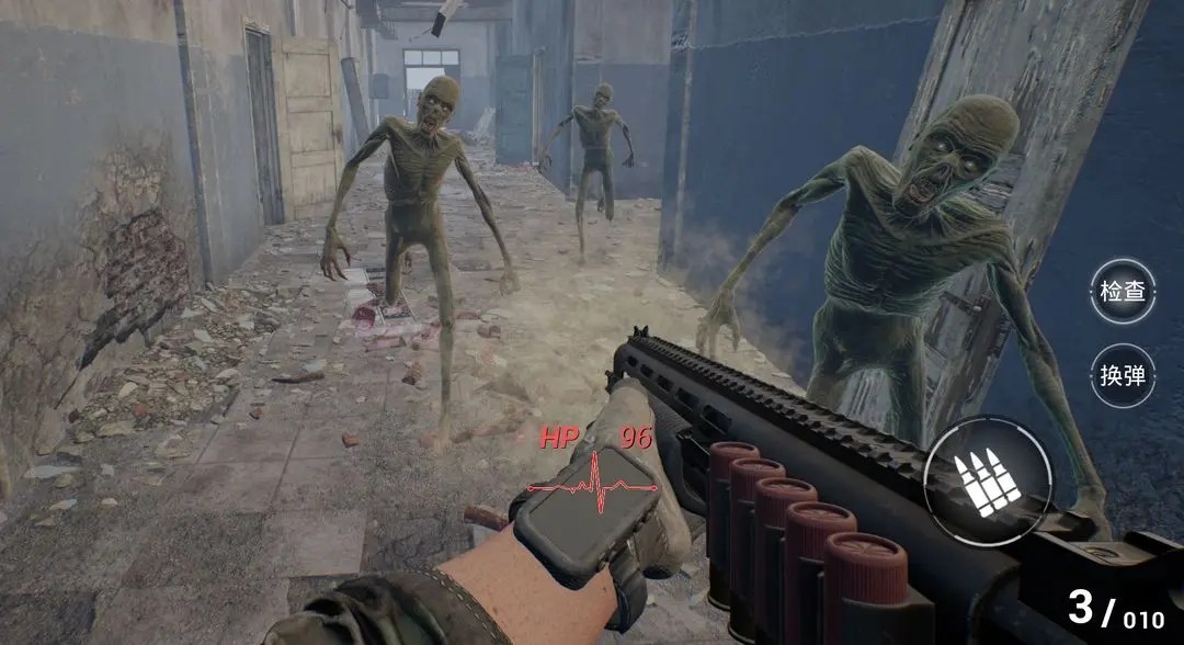 3、游戏以第一人称的视角带领玩家体验一场真实的僵尸末日生存战斗;