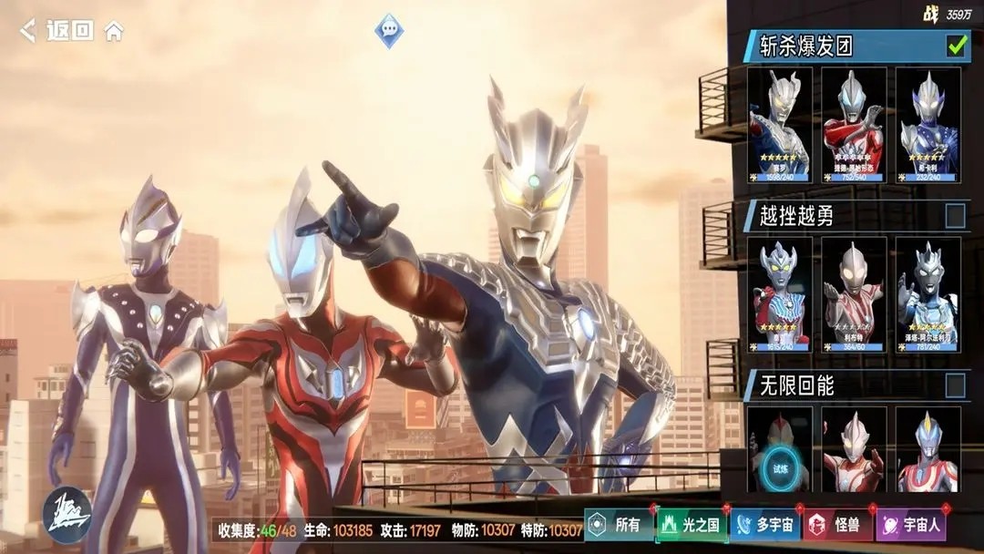 通过击败敌人或任务获得强化装备,提升奥特曼的战斗力。