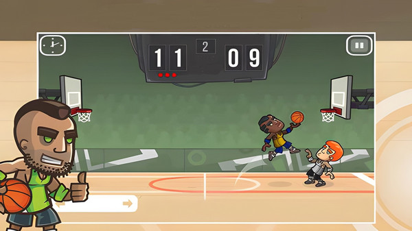 模拟篮球赛手机版是一款充满复古情怀的街机风体育竞技手游。游戏采用明快的卡通渲染技术,打造出萌趣十足的Q版赛场场景,整体画风既简约又充满活力。其创新的单手操控系统,让您只需简单点击屏幕就能完成角色移动、突破和精准投篮等动作,新手也能快速掌握。快来体验这款集轻松娱乐与竞技乐趣于一身的篮球手游吧!