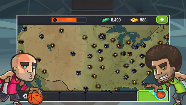 模拟篮球赛是一款街机风格的体育竞技游戏,该游戏采用了卡通式场景,其精简的Q版画面,让整体看上去显得非常简单有爱,同时操作方式也很简单,主要以按键的形式来控制角色在篮球场上的移动和动作投篮,极易上手,并且在这款游戏中还有比较特色的体力系统,它会依照你在游戏中的奔跑时间来逐渐消耗。除此之外,篮球战役这款游戏还为玩家提供了两种挑战模式,分别是闯关模式和对战模式,闯关模式下的战斗场景遍布美国全图,你可以与全美的各路高手进行PK,融合当下较为流行的卡牌玩法,简化了数值,模拟出了真实的战报动态,呈现给玩家真实而又激烈的比赛!