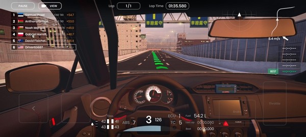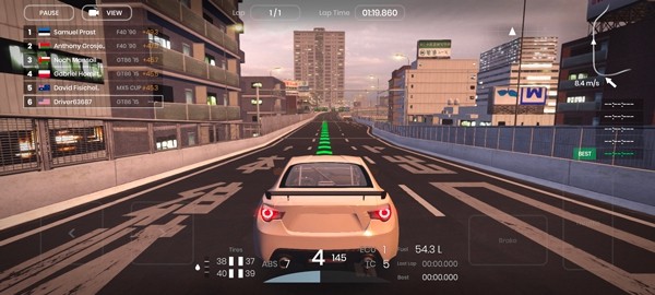 2、驾驶自己的跑车在道路上尽情驰骋,玩家可以逐步进入赛道中感受到更多刺激的挑战。