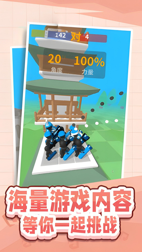 1、轻松简单的休闲游戏操作方式,瞄准你的敌人,用手指调整角度和力度,松开按键击中敌人。