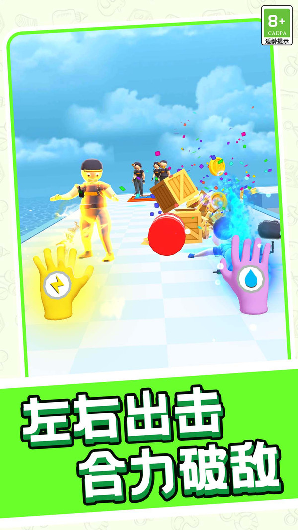 2、持续成长:随着不断闯关,你可以解锁更多超能力手套,提升角色能力,享受持续成长带来的成就感。