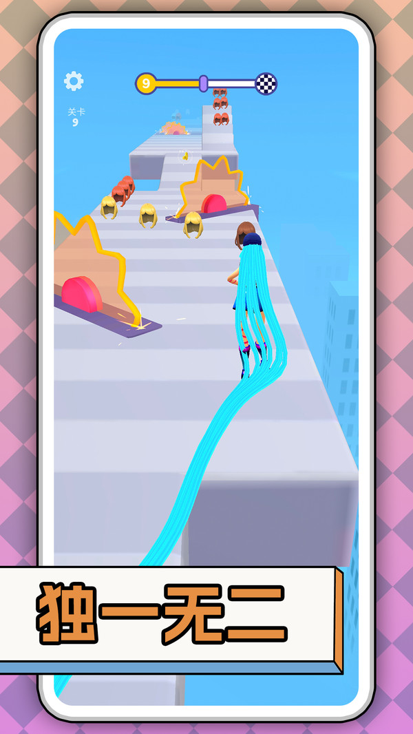 1、经典跑酷玩法,收集头发,躲避齿轮和剪刀等障碍;