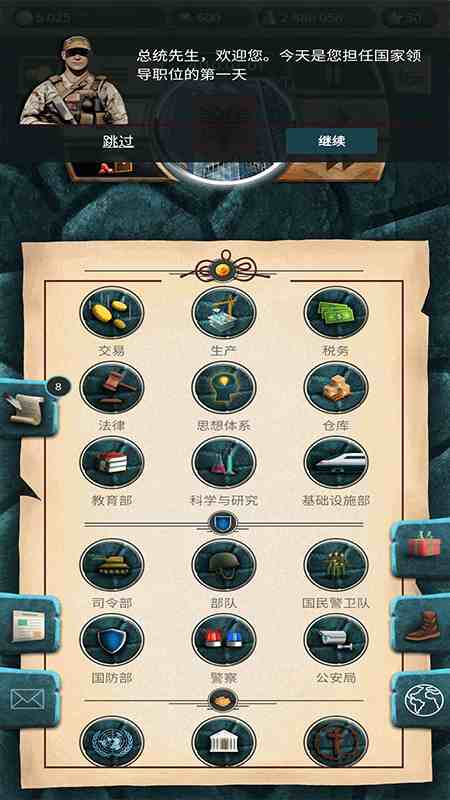 3、治理国家,探索新的技术,拓展国土,与其他国家作战。
