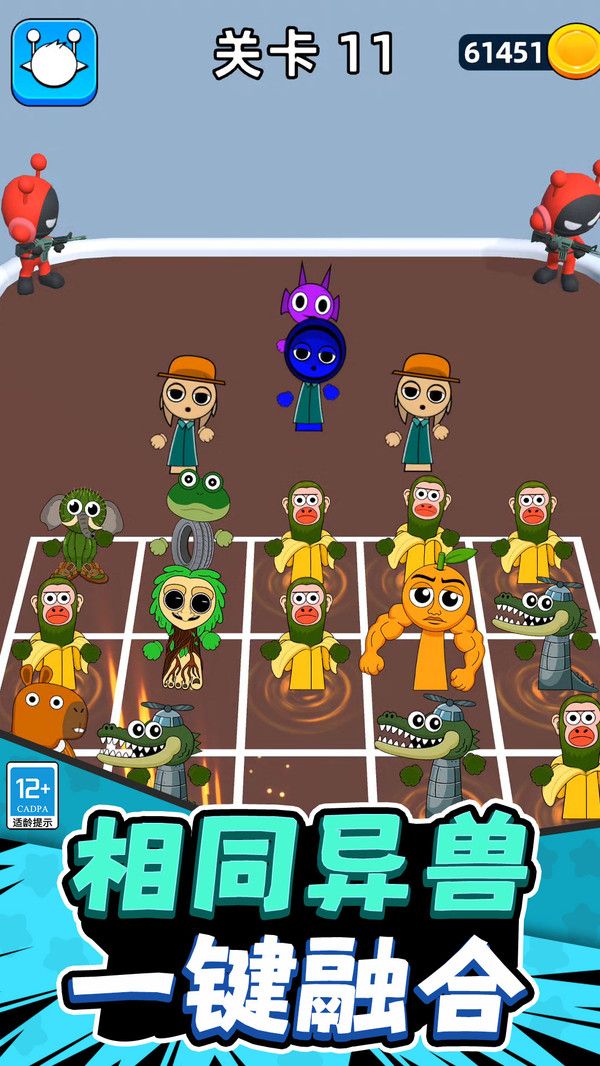 3、利用合成系统将相同异兽融合,强化阵容实力,之后根据战场情况派遣合适的角色与怪兽出战,对抗恐怖势力。
