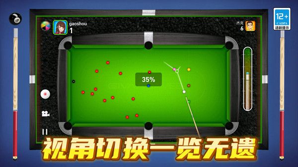 3、支持视角自由切换,能从不同角度清晰观察台球桌上的局势,助力玩家制定更优策略。