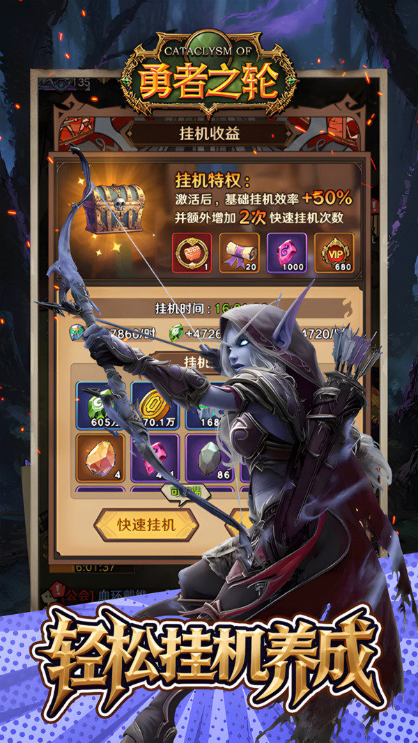 1、融合经典魔兽元素与策略玩法:游戏以魔兽世界观为背景,融入经典角色、种族和副本设定,玩家可通过收集不同阵营的魔兽英雄卡牌,利用属性相克和羁绊系统组建阵容,体验策略对战与冒险探索的深度结合。