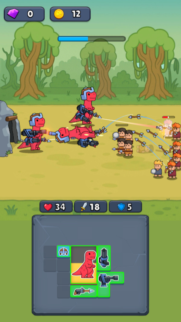 将你的恐龙放置在网格上,并为它们配备武器和装备。