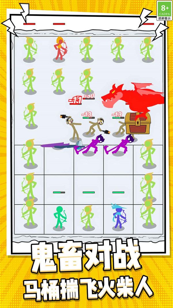 2、包含 “搞怪团战” 玩法,战斗过程充满趣味,比如 “马桶揣飞火柴人” 的鬼畜操作,打破严肃对战氛围,让玩家在欢乐中感受战斗乐趣。