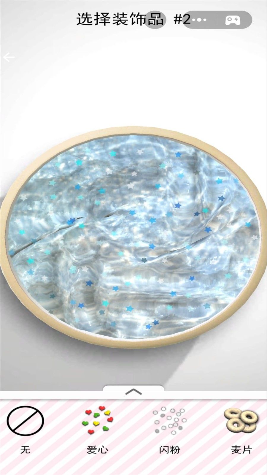1、进入制作界面后,选择基础史莱姆材质,再从爱心、闪粉、麦片等装饰品中挑选喜欢的样式,逐步添加并调整位置。