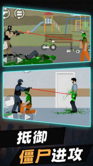 1、在不同场景的走廊中,操控角色移动躲避僵尸攻击,同时使用武器瞄准射击,击杀僵尸并阻止其突破防线,争取清空当前走廊。