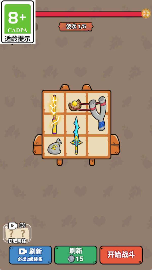 2、创意合成:独创的装备合成玩法,相同武器相邻摆放即可自动升级,操作简单效果惊艳。