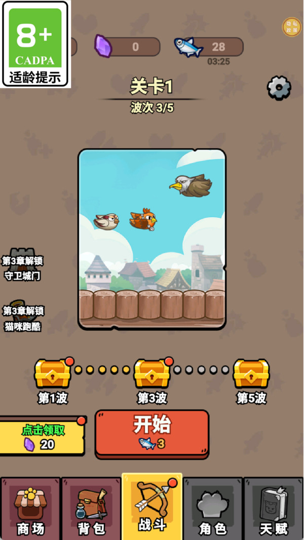 3、萌系画风:q版猫咪角色搭配精致城堡场景,战斗特效华丽而不失可爱。