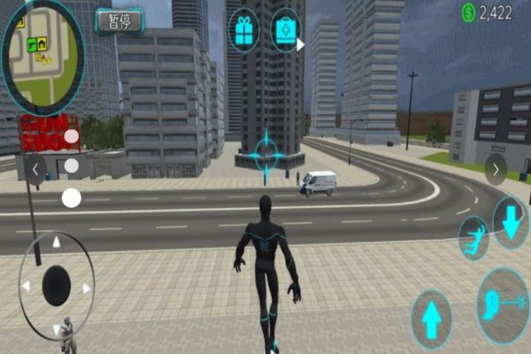 1、滑动屏幕控制蜘蛛侠发射绳索,在城市建筑间飞檐走壁,自由移动,探索城市,快速前往任务地点。