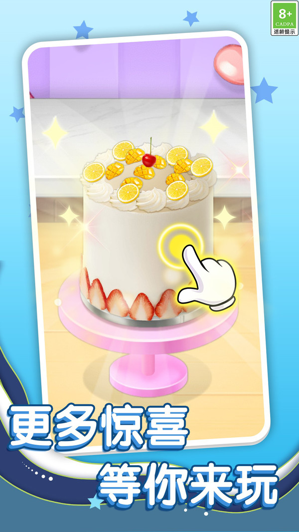1、独特的烘焙游戏,让玩家在游戏中体验烘焙蛋糕、曲奇、面包等的乐趣。