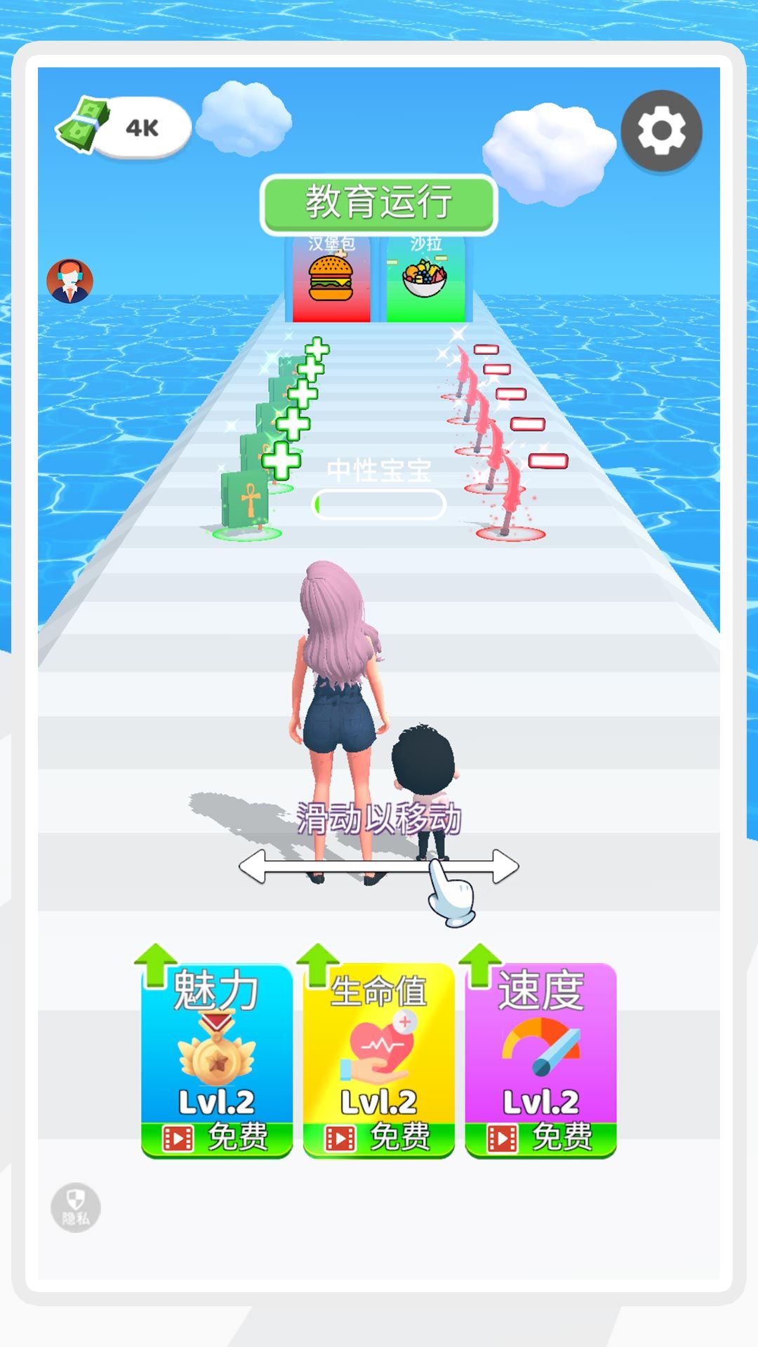 1、操作采用 “滑动以移动” 的直观方式,配合属性数值实时反馈角色状态,让玩家清晰掌握跑酷节奏与自身实力。