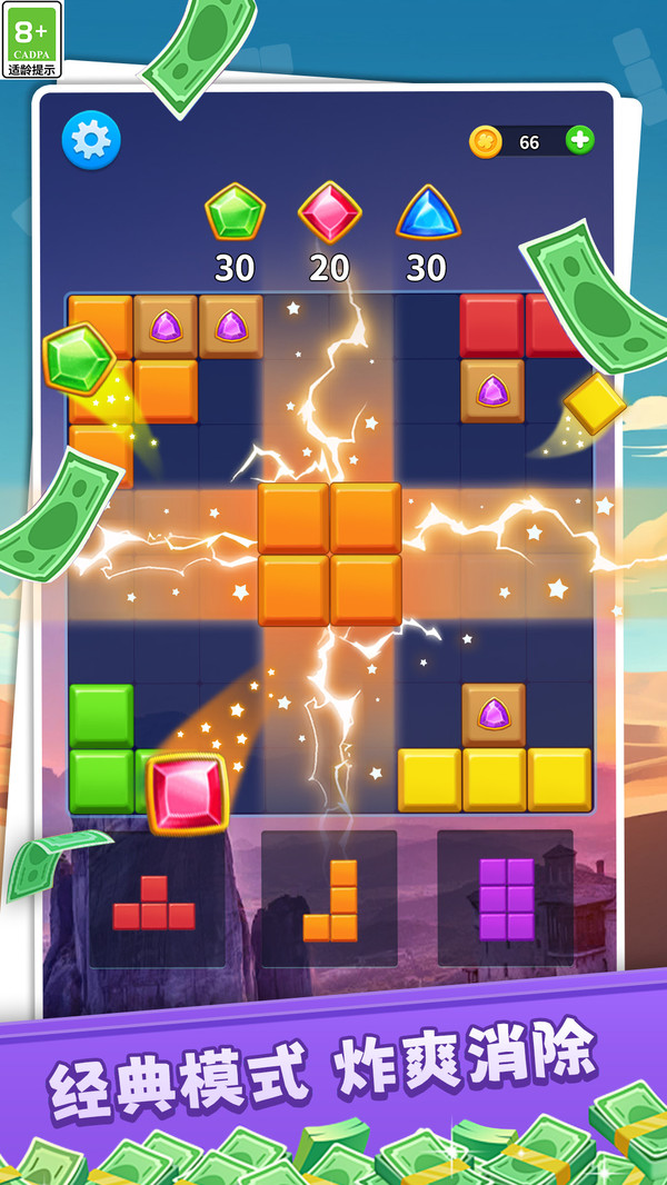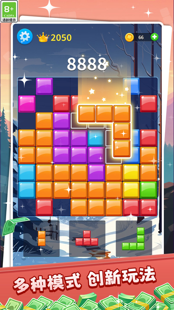 1、全新玩法模式逐渐解锁,尤其是自由移动方块填充拼接的玩法,这会特别考验自身的规划能力与技巧,不能疏忽大意。