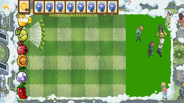 1、植物仅能通过100阳光 / 个的盲盒获取,开盒植物完全随机,宝箱角色召唤概率固定为7.5%,运气与策略结合打造独特军团。