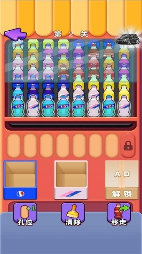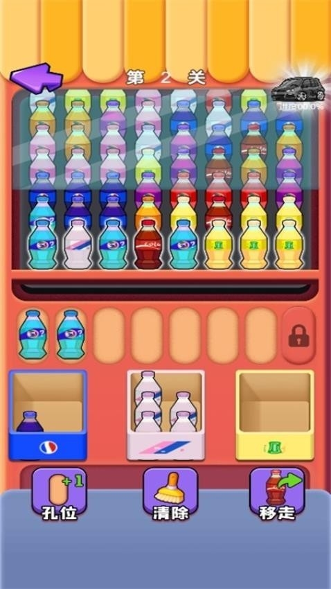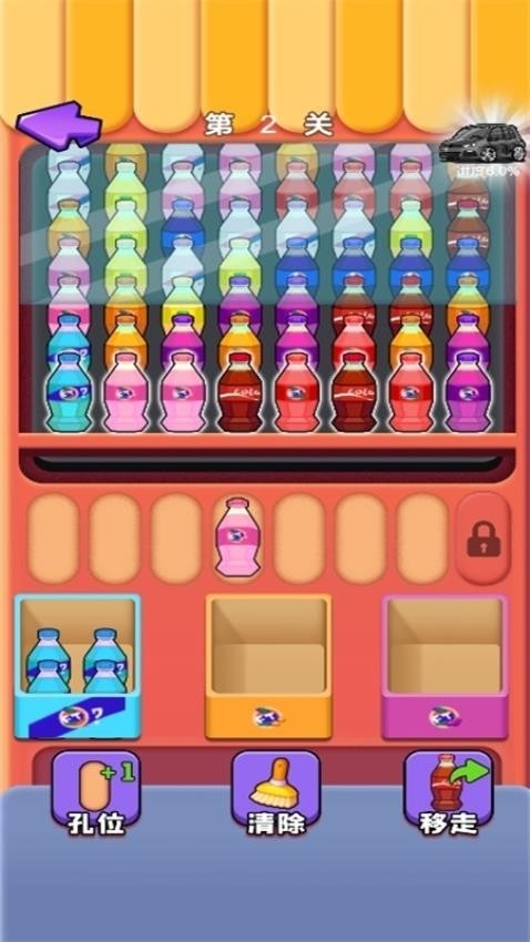 2、需要通过滑动或点击将同色果汁瓶按顺序排列,完成目标关卡,既考验策略又锻炼逻辑思维。