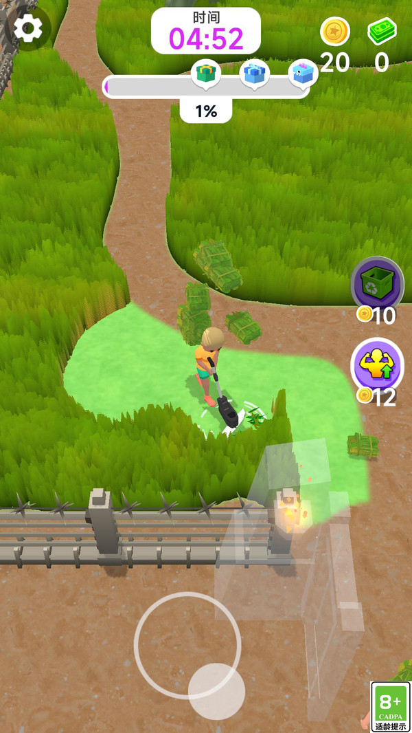 2、爽快割草小游戏,房屋周边的杂草需要全部割除哦。