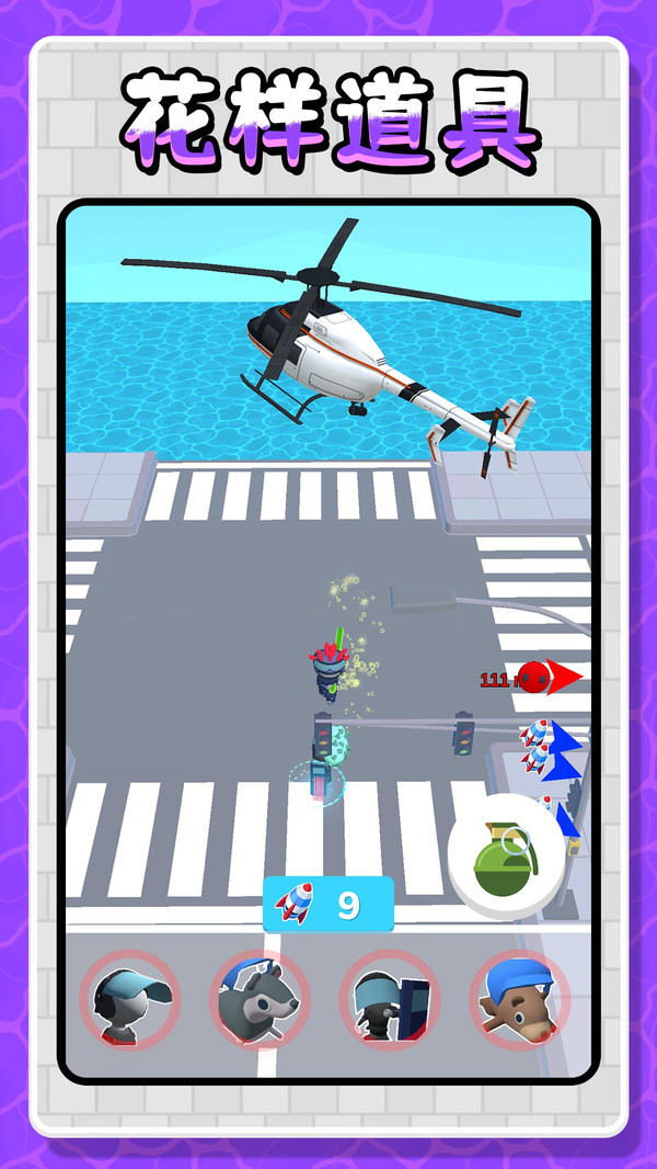 1、游戏提供了多种具有特殊技能的卡通英雄,开启新的作战;