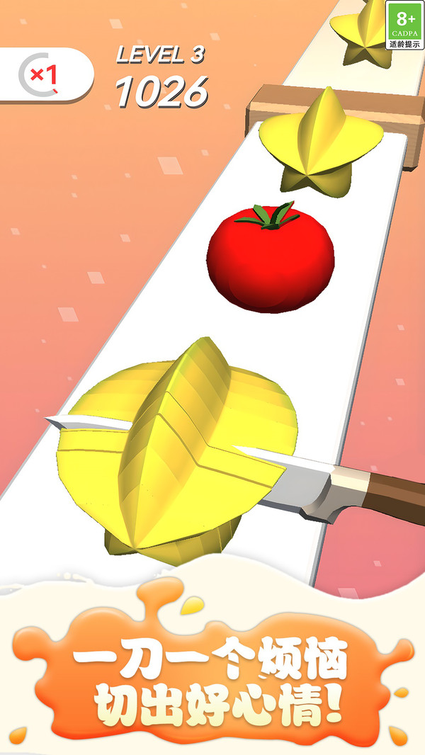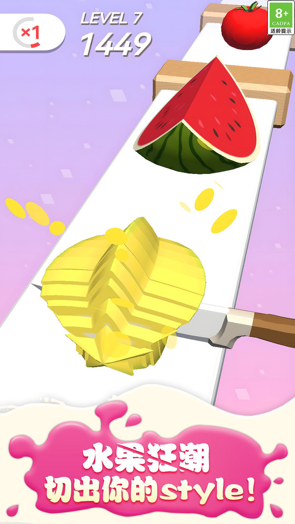 飞刀切水果开启你的切割盛宴,该游戏能够带来肾上腺素飙升的切割快感!化身水果忍者,用炫酷飞刀劈开西瓜、草莓等缤纷水果,在弹指间完成精准爆破。飞刀切水果游戏融合速度挑战与节奏把控,连击特效满屏绽放,更有隐藏彩蛋水果等你解锁。从新手到大师,每一次挥刀都是对反应力的极限考验,让果汁飞溅的爽感点燃你的战斗欲!