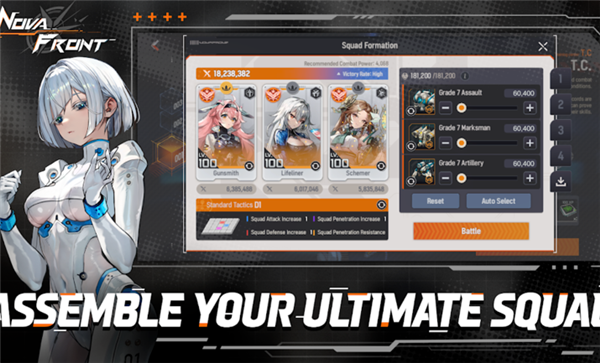 2、新星前线国际版根据战场需求组建3-5人作战小队,利用成员特性产生战术联动。