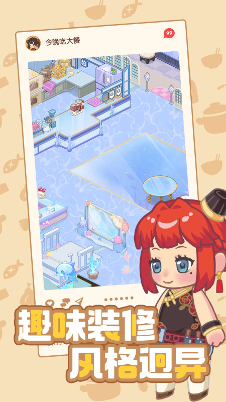 《今晚吃大餐》为你提供了丰富多样的家具与装饰选择,让你在室内外的每个角落都能展现个性与创意。无论是现代简约的设计风格,还是典雅的中式田园,亦或是梦幻的海底世界和甜美的糖果屋,你都可以随心所欲地进行主题区域的解锁与混搭。让每一位顾客在餐厅中都能感受到别样的体验与惊喜。