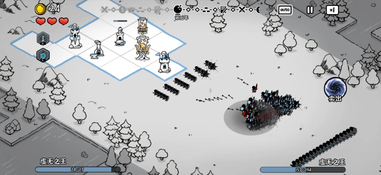 不同类型的士兵在战斗中各有其独特的效果和作用。在这个游戏中,你需要根据敌人的特点和自身的资源条件,合理组建自己的军队。从步兵、弓箭手到骑兵,每一种兵种都有其优势和劣势。通过不断的训练和升级,你将使自己的军队在战斗中更具威慑力。提升士兵技能和形成有效的战斗阵型,将使你在每一次交锋中占得先机。