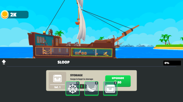 1、玩家要消耗金币升级船只,每个部件升级都能带来不同的效果,提升玩家的航行体验。