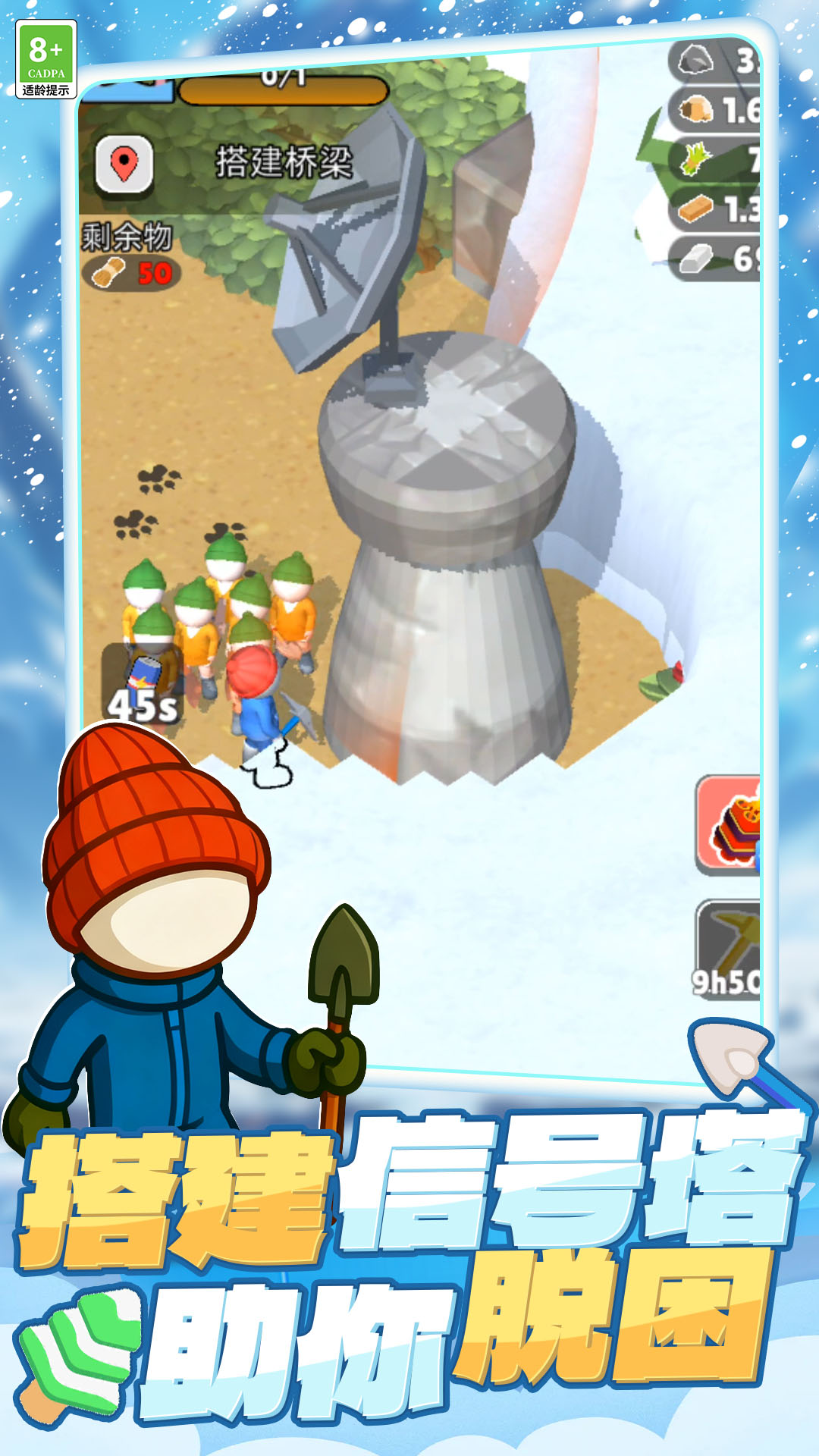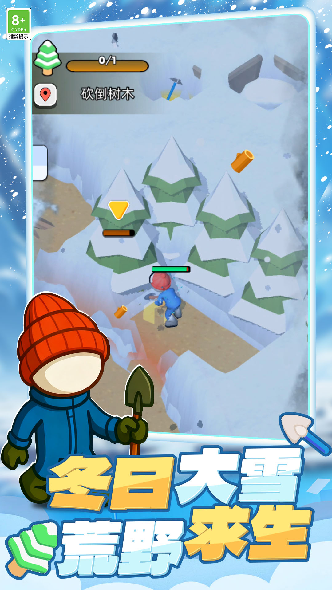 2、在冰雪覆盖的场景中搜寻各类生存必需资源,掌握高效采集方法,合理分配采集时间,确保基础物资供给稳定。