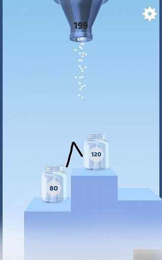 4、面对233数值,优化黑线路径,让更多颗粒进瓶,完成容量收集目标。