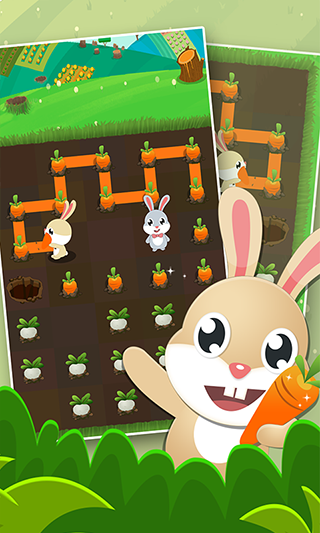 3、让兔子沿胡萝卜连接路径走,最终到达洞穴完成关卡。
