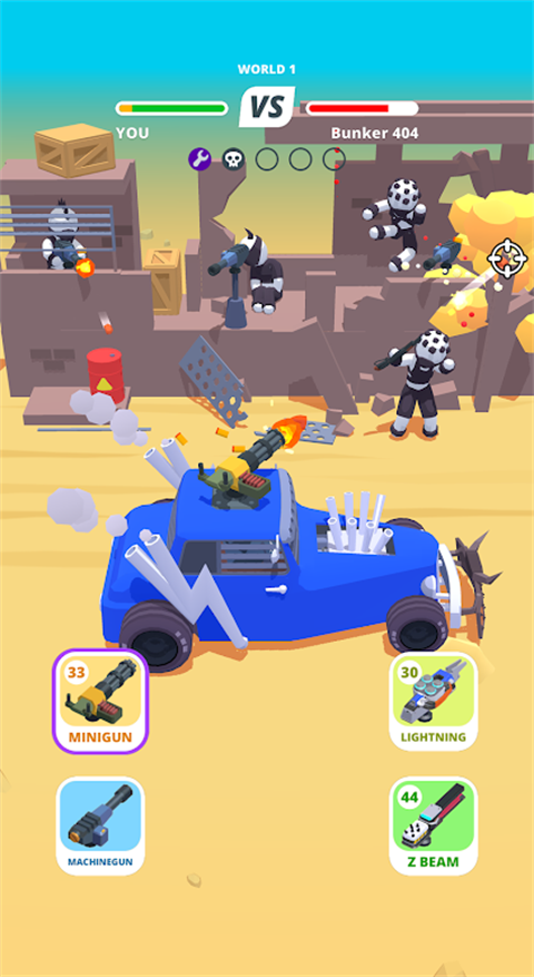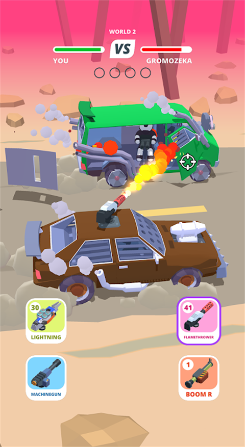 3、避开敌人的炮火,记住在其他车辆撞到你之前要避开它们,如果你受到太大的损害,你的车就会爆炸。