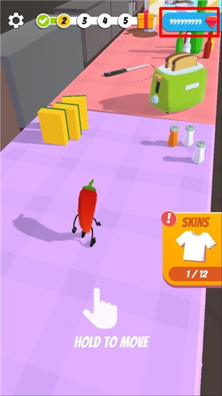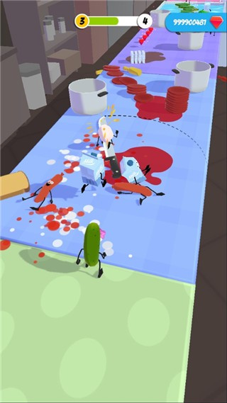 3、每个关卡都充满了各种刀具、调味料等障碍物。需要在有限的时间内操控食材进行逃亡,并躲避这些障碍物。通关后将能够获得钻石并抽取红包奖励