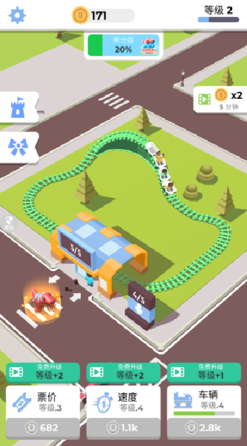 2、玩家可以利用收益来为站台升级,提升游客速度,站台容量等属性。