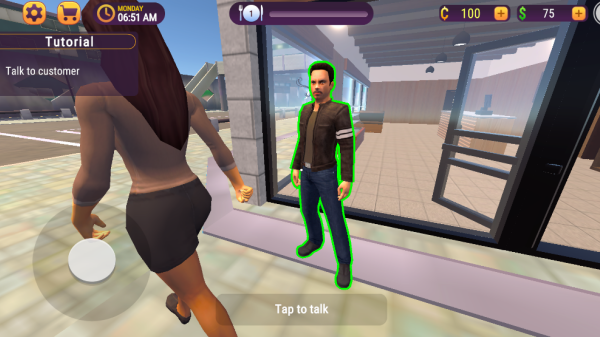 1、玩家要和NPC进行交流,开启店铺的经营之旅,玩家可以在互动过程中了解基础操作。