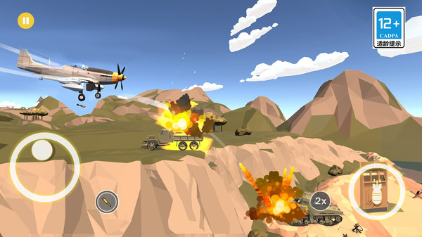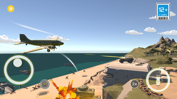 1、多种轰炸模式,需要精确计算投放炸弹的角度和时间,然后摧毁敌人的重要军事目标,比如工厂、桥梁、机场。
