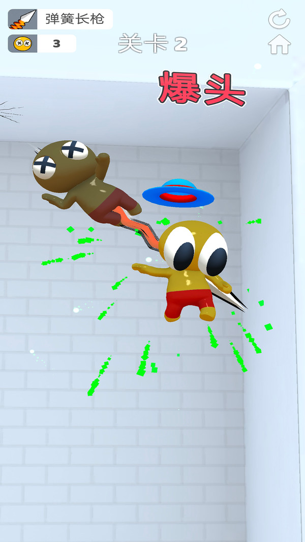 1、木偶人受击后的碎裂、弹跳、翻滚等效果均由物理引擎模拟,每一枪都能带来不同的破坏效果。