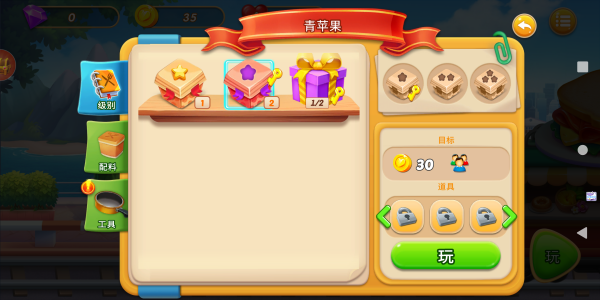 3.如下图所示,每一个关卡都有不同的任务目标,在本关卡中玩加需要赚取30枚硬币才能闯关。