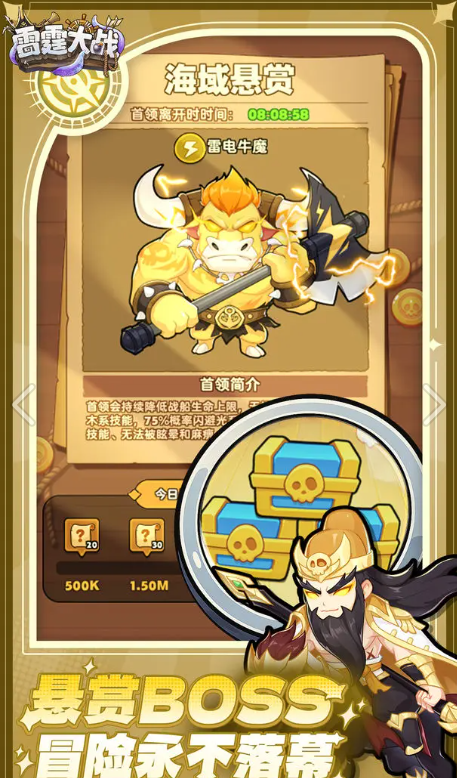 在风起云涌的海洋之中,蔚蓝远洋正待你的掌舵。雷霆大战为玩家呈现了一个充满冒险和变数的背景。这里不仅是探索未知的广阔海域,更是各种势力交锋、策略博弈的重要战场。你将化身为一位海洋指挥官,运用巧妙的策略和反应敏捷的决策,与各种敌对生物展开殊死斗争。
