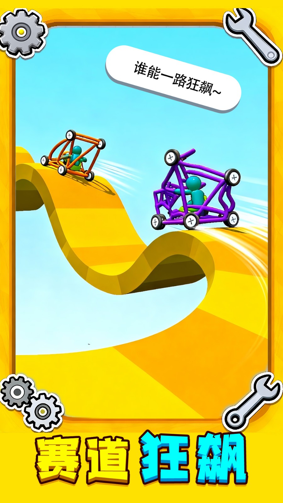 3、提供无任务限制的自由模式,可随意组装小车后在任意已解锁赛道驰骋,专注享受创造与狂飙的纯粹乐趣。